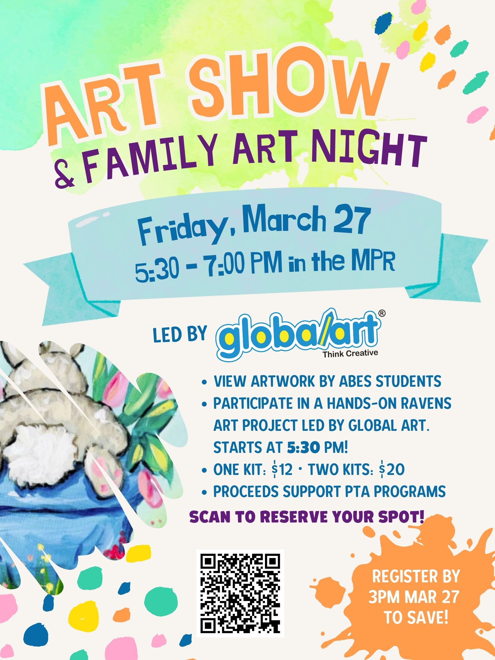 Participate in our hands-on Ravens Art Night Project on Friday May 23rd, led by Adobe Bluffs parent Ernesto Sillas! This art project will be fun for kids and adults, so you can join the fun with your student! This event has become an annual Adobe Bluffs tradition!